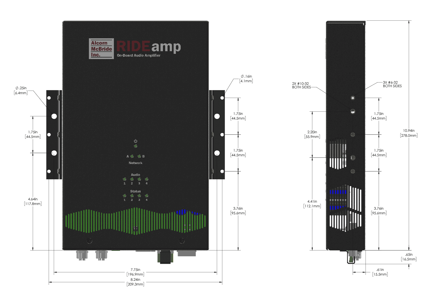 - Dimensions - 11.55”L x 7”W x 1.7”H (294.5mm x 177.8mm x 44mm)