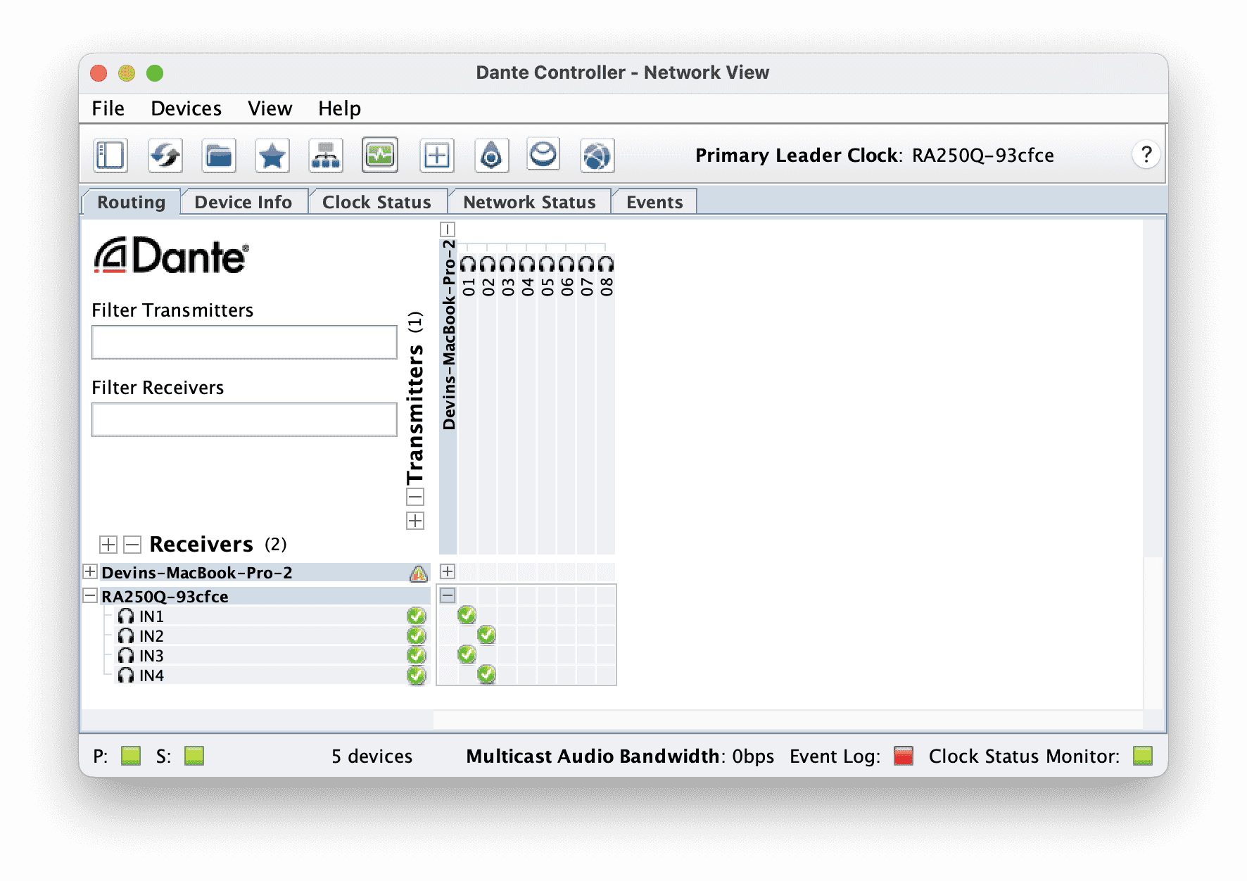 The first step to set up monitoring of a RideAmp is to configure the unit(s) using Dante Controller.