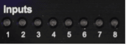 The input indicator LEDs are located in the middle left section of the top-panel.