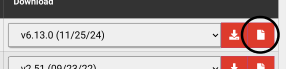 Release notes are available from the firmware and software download pages on our website by clicking on the icon circled below.