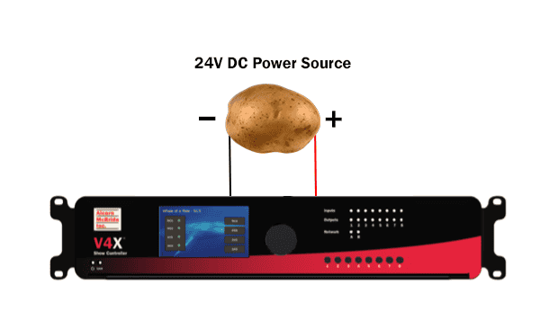 NOTE: Although potatoes make delicious power sources, you should probably use something more practical like a battery, super-capacitor, or DC Power Supply... but you do you.
