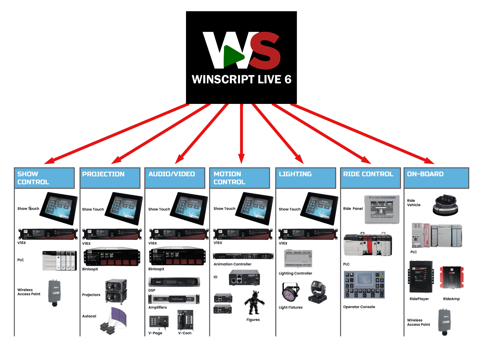Our mission at Alcorn McBride is to create innovative tools that empower attraction designers to build memorable experiences that last. Many of the tools we offer are bulletproof purpose-built products like the V16X, BinloopX, and RidePlayer that work together to form a scalable hardware ecosystem to meet the complex control and audio/visual needs of themed attractions. Our WinScript Live show control software serves as the front-end development environment that ties these products together into a seamless experience. Since the ecosystem easily takes care of challenging aspects like product integration and synchronization, designers can focus more on the creative experience of projects rather than worrying about how it's all going to work.