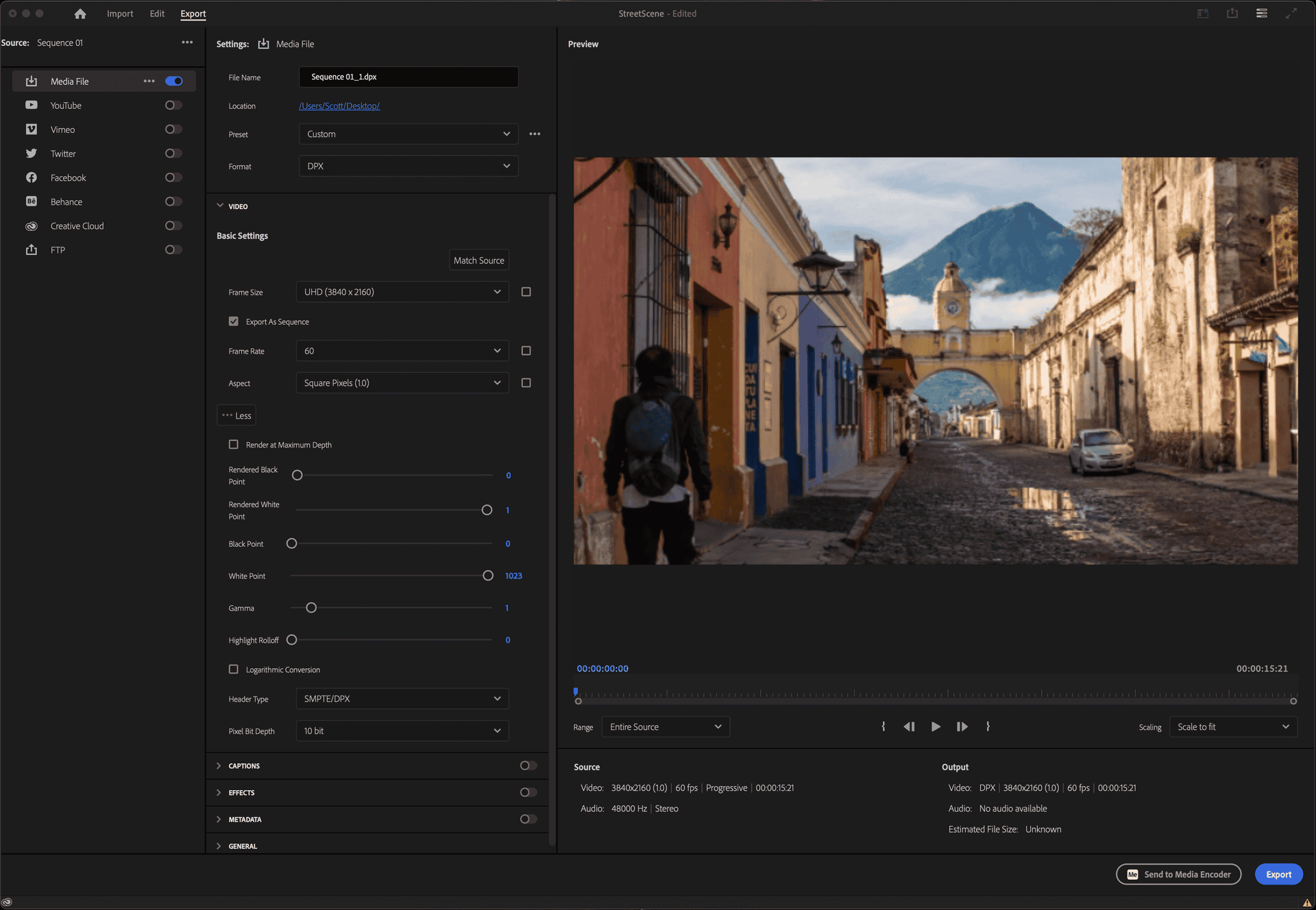 There are many production tools that are capable of exporting DPX image files, but Adobe Creative Suite applications such as Premiere, After Effects, and Media Encoder are certainly some of the most popular tools used for video workflow. This is a quick guide on how to export DPX files that are compatible with the BX-4KU.