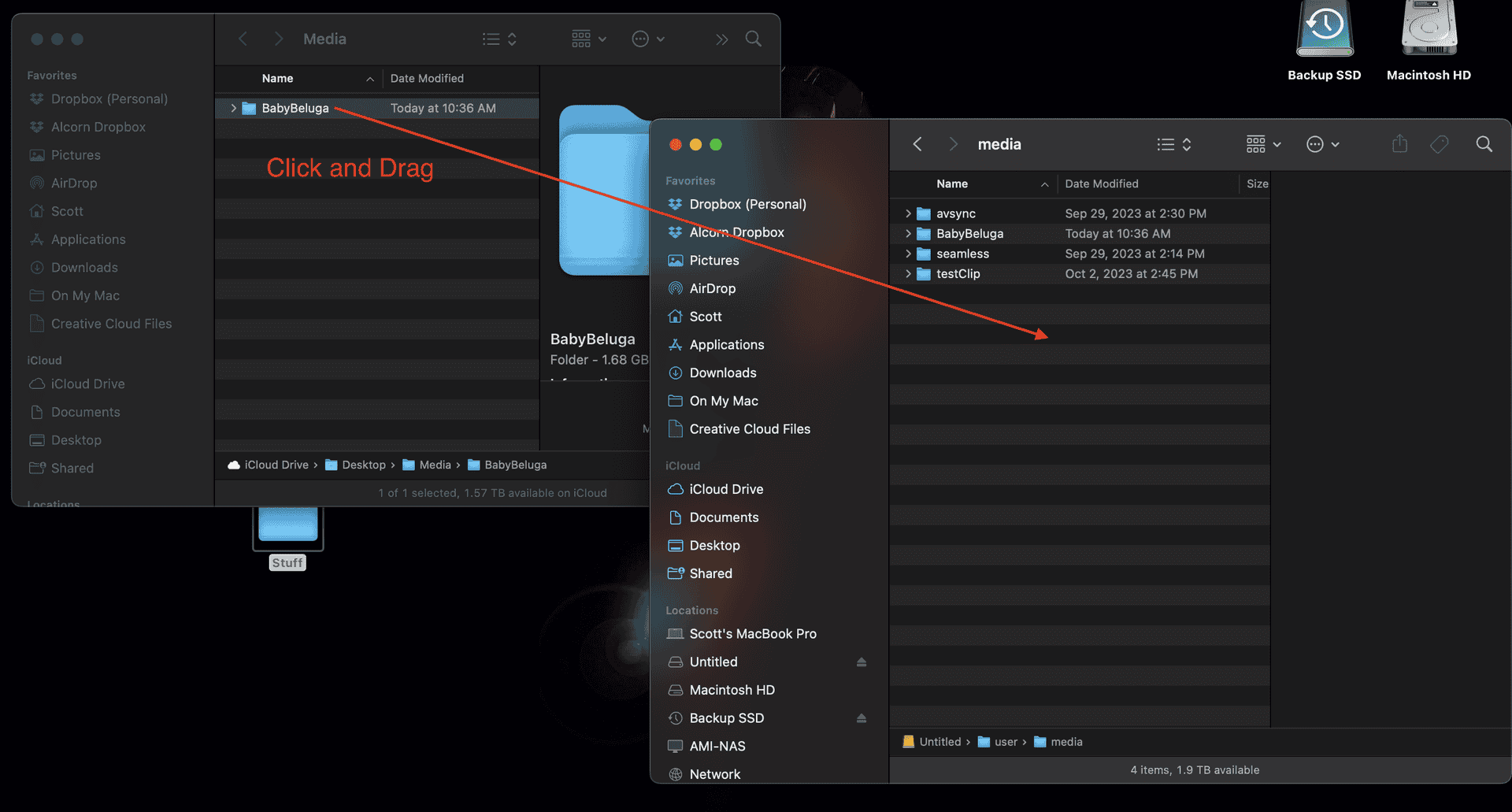 Click and drag the source folder containing the DPX files and drag it over to the destination media folder of the BX-4KU.