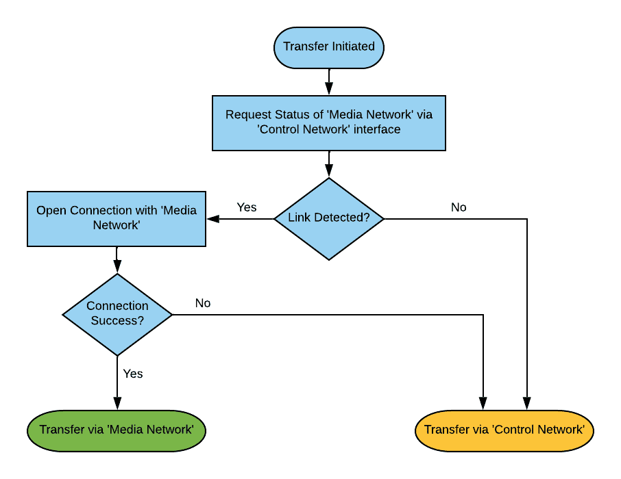 Aside from the ability to configure and program the BinloopX, WinScript Live also has the ability to manage and transfer content to the BinloopX modules via Ethernet. This transfer will occur over the main Network port on the BX-CON1 controller card or, optionally, over the Media Network port of the BX-4KU that you are transferring to. Although it requires an additional network connection, the advantage of using the Media Network port is faster transfer speeds...which can make quite a difference when you're transferring many large DPX files! WinScript will automatically check for this dedicated connection when you initiate a transfer and use it if it's available.