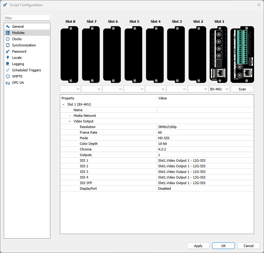 5. In the section below the slots, expand the tree corresponding to the slot you which to configure, then expand the Video Output section.