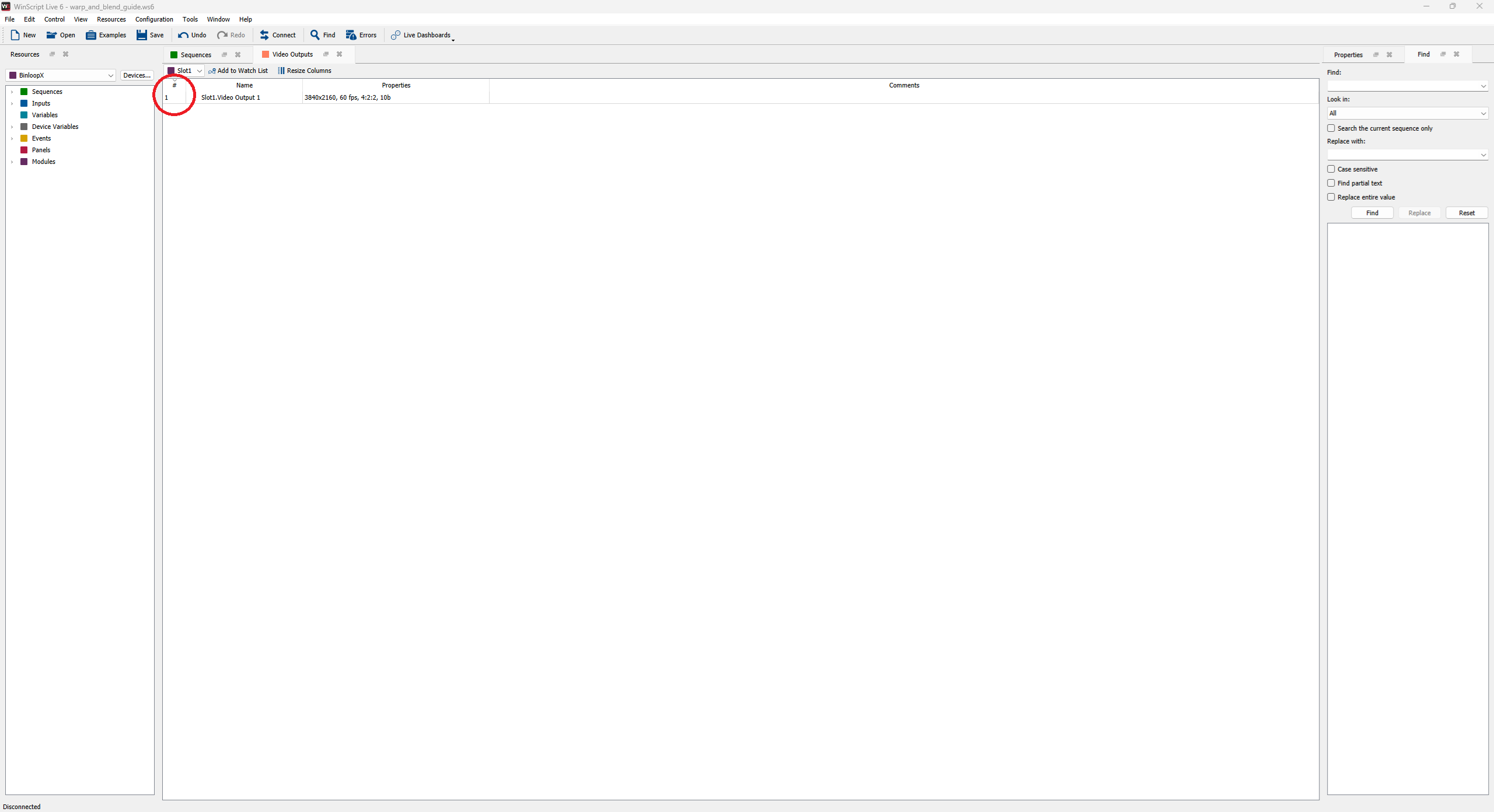 1. In the WinScript application menu, click ResourcesVideo Outputs. This will open the Video Outputs resource view.
