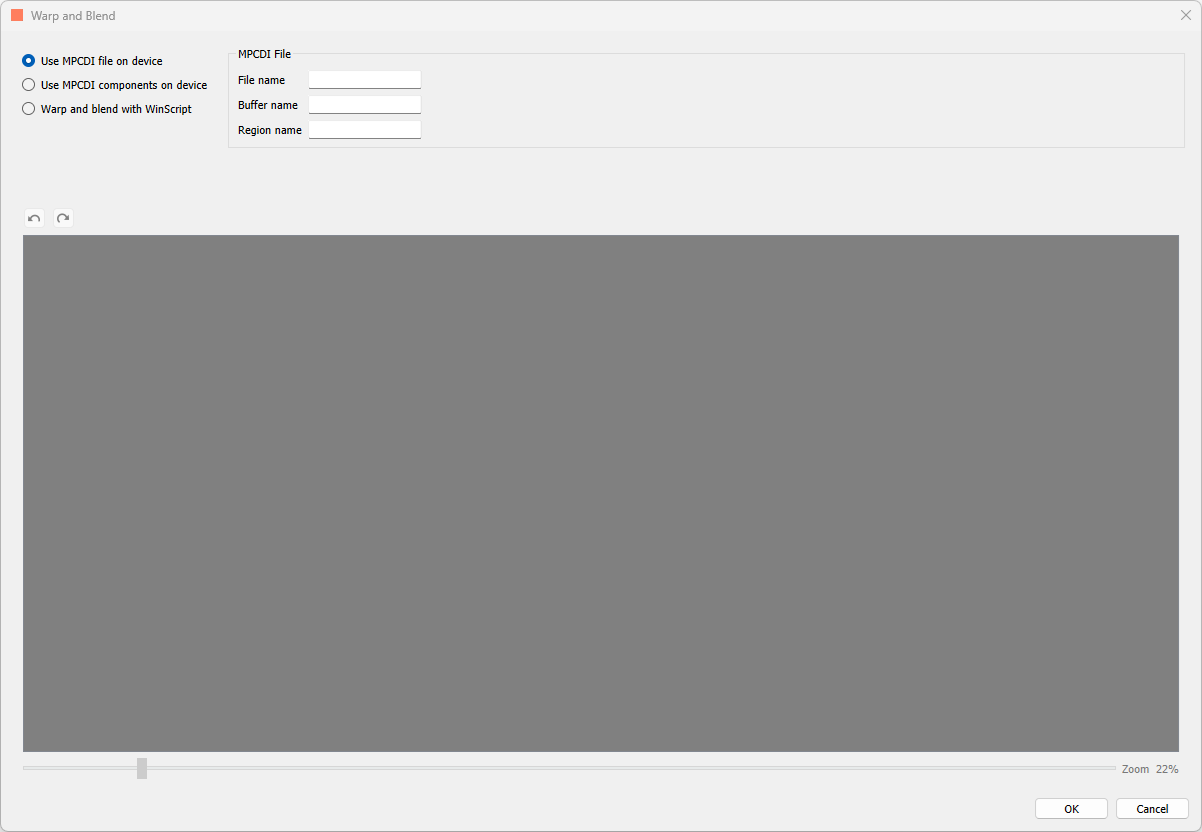 1. In the MPCDI Components section, in the Warp .pfm filename field, enter the file name of your .pfm file.