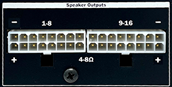 This is where you connect speakers to the RideAmp. You can wire up to 16 discrete channels of speakers at up to 30 W each, or you can bridge each channel pair to achieve up to 60 W.