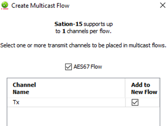 . Select AES67 Flow, then Add to New Flow. Click Create. The station is now AES67 enabled and will be available in the Q-SYS AES67 Receiver in the Stream Name drop-down menu.