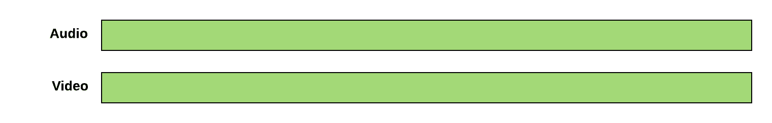 No matter how perfectly synchronized two clocks may be, it doesn't do much good if you can't start playback at the same time. To illustrate by example, let's walk through a typical dark ride system that requires synchronized on-board audio and wayside video. To keep things nice and simple, let's say we have an audio clip and a video clip of a certain length that are designed to be played synchronously with each other like so: