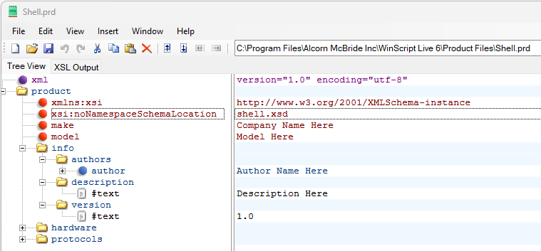 For the following section examples, open "Shell.prd" located in the "product files" directory of "Program Files\Alcorn McBride". Opening this in XML Notepad ("Product File Editor" on the "Tools" menu) is a good place to start.