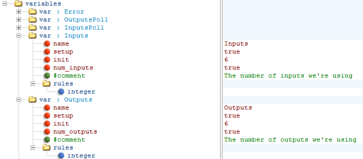 These variables have the special attribute "num_inputs" or "num_outputs." The screen shot below shows the XML setup from XML Notepad with these special variables.