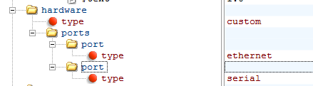 - "port" sections’s "type": type ethernet or serial. Delete or add additional ‘ports’ sections to match your hardware
