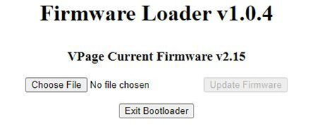 Once Firmware Update Mode is activated (you will see rapidly blinking LEDs on your V-Page or V-Com) a web browser tab will be launched at your V-Page or V-Com's IP address, and you will see the dialogue below: