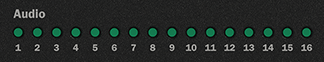 These indicators display the status of all 16 audio outputs. This includes playback activity and audio mute status.