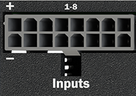 This connector provides access to 8 discrete digital inputs that can be used as show control triggers within your RidePlayerX script. Each input has two contacts and can be software-configured within the WinScript Live project for two modes of operation; contact closure or voltage.