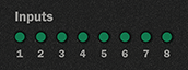 The input indicator LEDs are located in the middle left section of the top-panel.