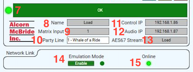 - Audio IP: The IP address of the audio network of the unit entered by the user or fully populated once an IP is being assigned by a switch in DHCP mode.