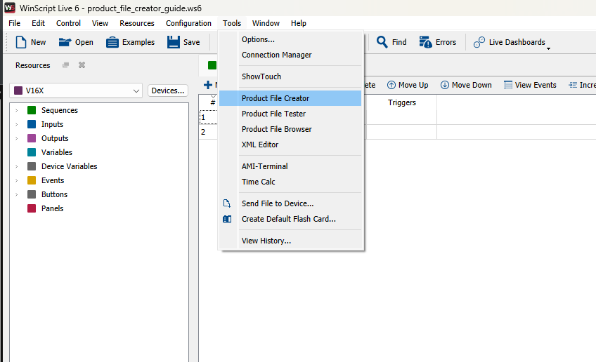 Product File Creator can be found under the Tools menu of WinScript Live.
