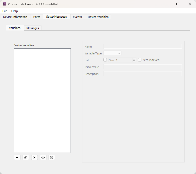 The Variables in the Variables tab of the Setup Messages tab are not the same as the Device Variables defined on the Device Variables tab. The variables used here are only used when sending or receiving Setup Messages.