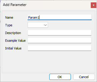 The white area lists all the parameters already defined. Beneath this area are options to Add New Parameter (➕), Duplicate Parameter (📄), Delete Current Parameter (✖️), Move Parameter Up (⬆️), and Move Parameter Down (⬇️).