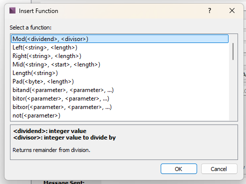 - Checksum (parameter): Returns a bytewise checksum (up for four bytes in size) for all of the characters in the parameter.