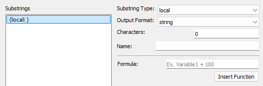 The Local substring option allows you to create a local variable with a name, and provides a Characters section that works just like in the Wildcard substring described above.