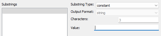 A Constantsubstring includes a field for value. This value is a string and can containt letters, numbers, and symbols.