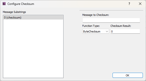- ByteChecksum (parameter): Returns the least significant byte of the checksum for all of the characters in the parameter.